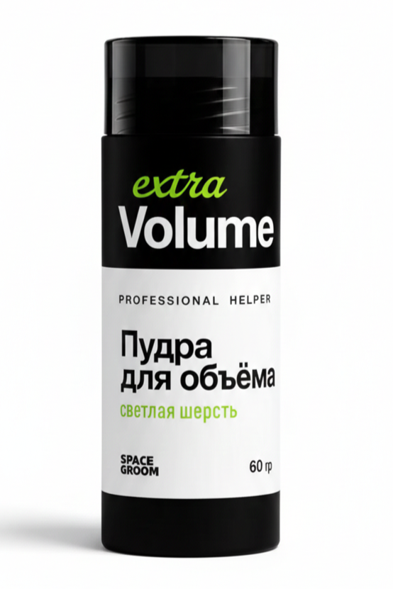Бренд Space Groom выпустил сразу два варианта пудры для объёма: для тёмной и для светлой шерсти — и это не просто маркетинговый ход, а продуманное профессиональное решение. Дело в том, что универсальная белая пудра на тёмной шерсти неизбежно даёт нежелательный осветляющий эффект: шерсть выглядит тусклой, припудренной или даже седоватой. Тёмная пудра, в свою очередь, способна «заглушить» светлые оттенки, лишив их естественного сияния и чистоты цвета.