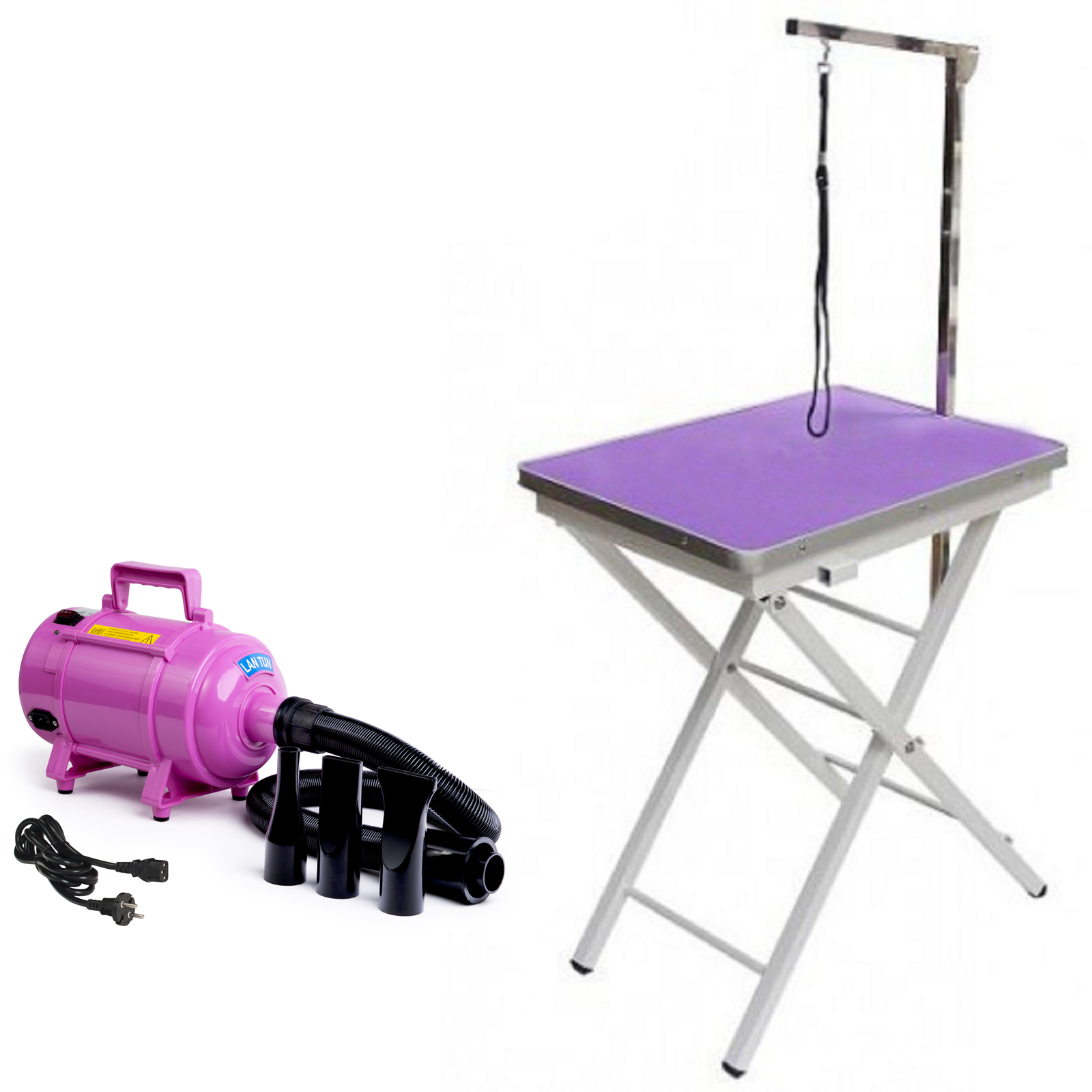 Стартовый набор для груминга: Компрессор LAN TUN LT-1090 (розовый) + Стол KOMONDOR TS-06N
